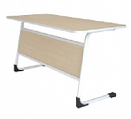 Стол ученический двухместный. Изготовлен из ЛДСП размером 120х50 см и толщиной 22 мм. Торцы столешницы обработаны кромкой толщиной 2 мм. Металлокаркас стола изготовлен из трубы плоскоовального сечения и окрашен износостойкой порошковой краской. Наличие царги делает конструкцию более прочной.
