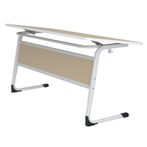 Стол ученический двухместный регулируемый по высоте и с наклонной столешницей. Изготовлен из ЛДСП размером 120х50 см и толщиной 22 мм. Торцы столешницы обработаны кромкой толщиной 2 мм. Металлокаркас стола изготовлен из трубы плоскоовального сечения и окрашен износостойкой порошковой краской. Наличие царги делает конструкцию более прочной.